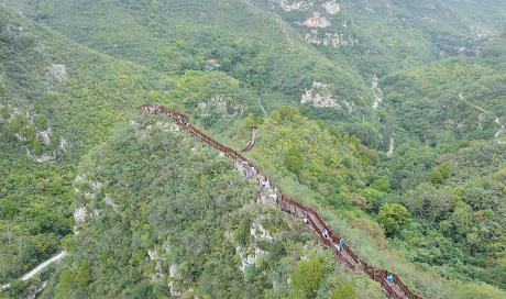 9月16日,中站區(qū)龍翔街道趙莊村窄門峽谷景區(qū)新修建的步道游人如織。窄門峽谷景區(qū)沿山脊新建成步道1300米,成為市民登山健身、欣賞太行風光的好去處。