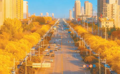 11月15日,世紀路兩側(cè)的白蠟樹換上金黃“盛裝”。高大樹冠交織成蔭,金黃葉片隨風輕舞,讓這條街道變身為一道富有詩意的秋日風景線。