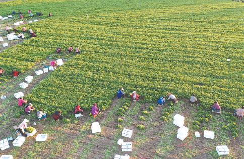 11月21日,沁陽市王曲鄉(xiāng)里村的農(nóng)民在田間收割香菜(無人機照片)。入冬以來,寒意漸濃,各地農(nóng)民搶抓農(nóng)時,進行農(nóng)作物種植、田間管護和采收等農(nóng)事活動,田間地頭一派繁忙景象。