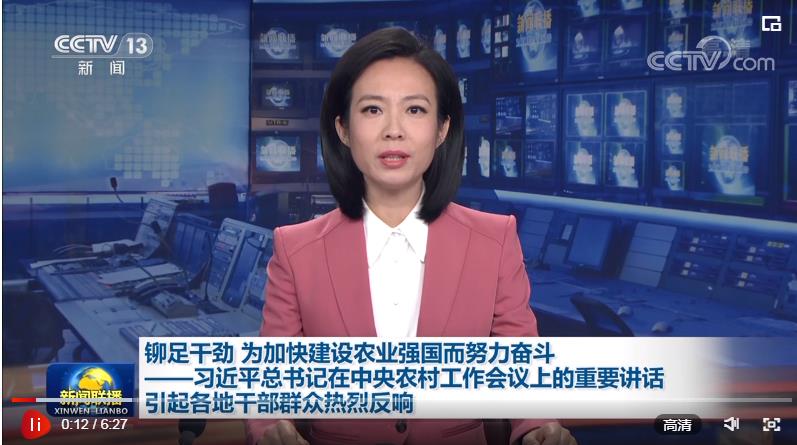 央視網(wǎng)消息(新聞聯(lián)播):習(xí)近平總書(shū)記在中央農(nóng)村工作會(huì)議上的重要講話在各地干部群眾中引起熱烈反響,大家表示,要堅(jiān)持以習(xí)近平新時(shí)代中國(guó)特色社會(huì)主義思想為指導(dǎo),鉚足干勁,抓好以鄉(xiāng)村振興為重心的“三農(nóng)”各項(xiàng)工作,大力推進(jìn)農(nóng)業(yè)農(nóng)村現(xiàn)代化,為加快建設(shè)農(nóng)業(yè)強(qiáng)國(guó)而努力奮斗。