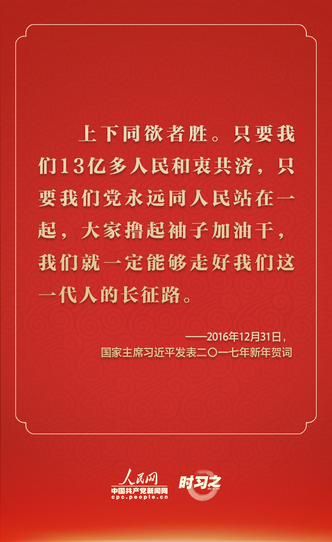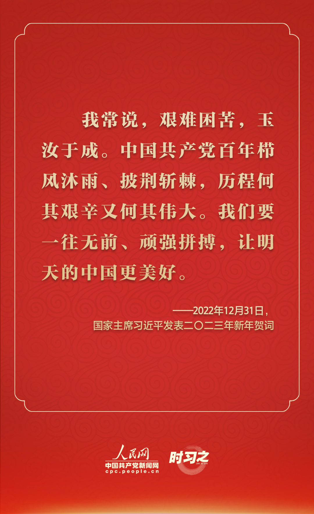 新年前夕,國家主席習(xí)近平通過中央廣播電視總臺和互聯(lián)網(wǎng),發(fā)表了二〇二三年新年賀詞。每一年的新年賀詞,習(xí)近平主席堅(jiān)定而溫暖的話語直抵人心,是對全黨全國各族人民在全面建設(shè)社會主義現(xiàn)代化國家新征程上勇毅前行的有力動員。人民網(wǎng)·中國共產(chǎn)黨新聞網(wǎng)“時習(xí)之”欄目帶您一起從習(xí)近平主席的新年賀詞里汲取前行力量。