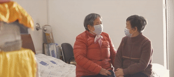 通過(guò)視頻連線,同福建省福州市社會(huì)福利院的老人和護(hù)理人員親切交流。