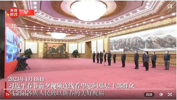 聯(lián)播+辭舊送吉虎,迎新接玉兔。春節(jié)前夕,習近平總書記在人民大會堂東大廳,同黑龍江、福建、新疆、河南、北京、四川等地基層干部群眾視頻連線,看望慰問基層干部群眾,向全國各族人民致以新春的美好祝福。