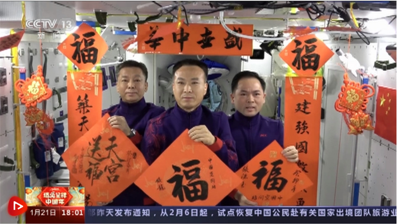 不知天上宮闕,今夕是何年,看來,他們也在過年,F(xiàn)在,來看一下航天員們送給全國人民最新的新春祝福。