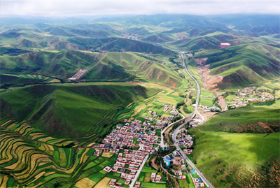這是2020年8月12日拍攝的甘肅省甘南藏族自治州卓尼縣阿子灘鎮(zhèn)阿子灘村(無人機照片)。