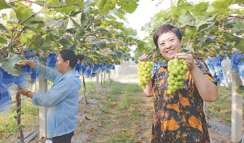 9月8日,博愛縣磨頭鎮(zhèn)獅口村葡萄產(chǎn)業(yè)園,游客在采摘葡萄。該葡萄產(chǎn)業(yè)園占地55畝,年產(chǎn)值可達(dá)200萬元,年利潤可達(dá)100萬元,為50余名村民提供了務(wù)工崗位。