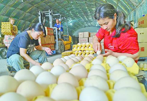 9月10日,武陟縣小董鄉(xiāng)磨莊村鴻益農(nóng)牧專業(yè)合作社,社員在打包雞蛋。該合作社現(xiàn)有飼養(yǎng)大棚40座,蛋雞存欄量達(dá)30萬只,平均日產(chǎn)蛋12噸,年收益達(dá)200萬元,為本村及周邊村民提供了50余個(gè)就業(yè)崗位。